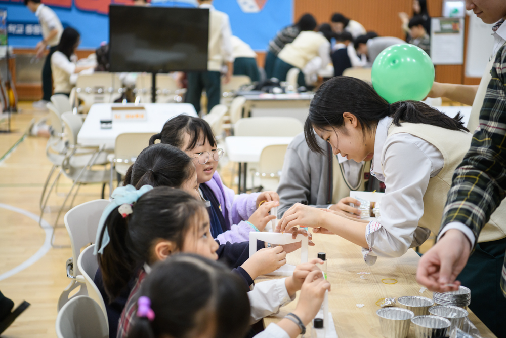 과학의 날 실험축제, 수학과학 페스티벌과 국립중앙과학관 등 학교에 인접한 대덕연구단지의 기관들과 연계한 체험 중심의 과학 수업을 전개합니다.